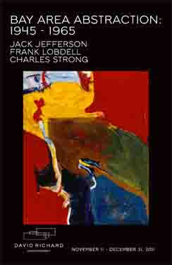 Hassel Smith, Robert McChesney, Edward Dugmore—who also studied with Still and was a contemporary of Jefferson & Lobdell during his time in San Francisco—and several of Smith’s students, including Madeleine Dimond, Lilly Fenichel, James Kelly and Deborah Remington, were notable Bay Area painters of the postwar era in addition to being friends and colleagues of Jefferson, Lobdell and Strong. Lynn Faus and Michael Kennedy, a couple of younger Bay Area Abstractionists, studied at the San Francisco Art Institute with Jack Jefferson.